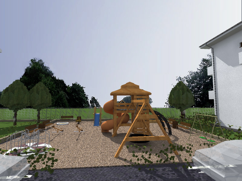 Spatiul de joaca va fi amplasat intre blocuri, avand astfel cu totii acces cat mai usor la el.