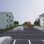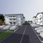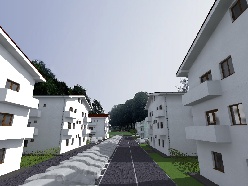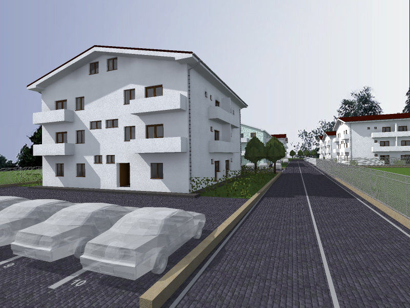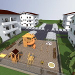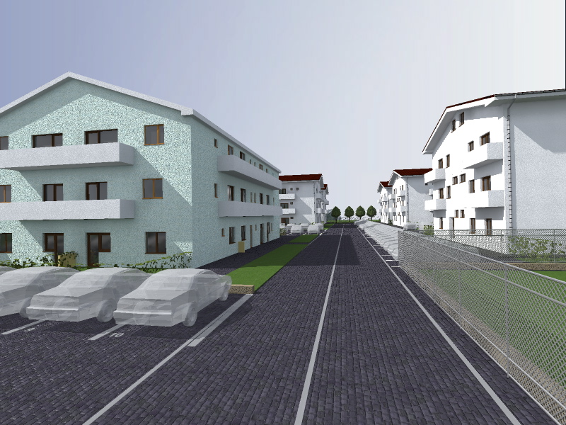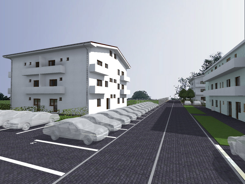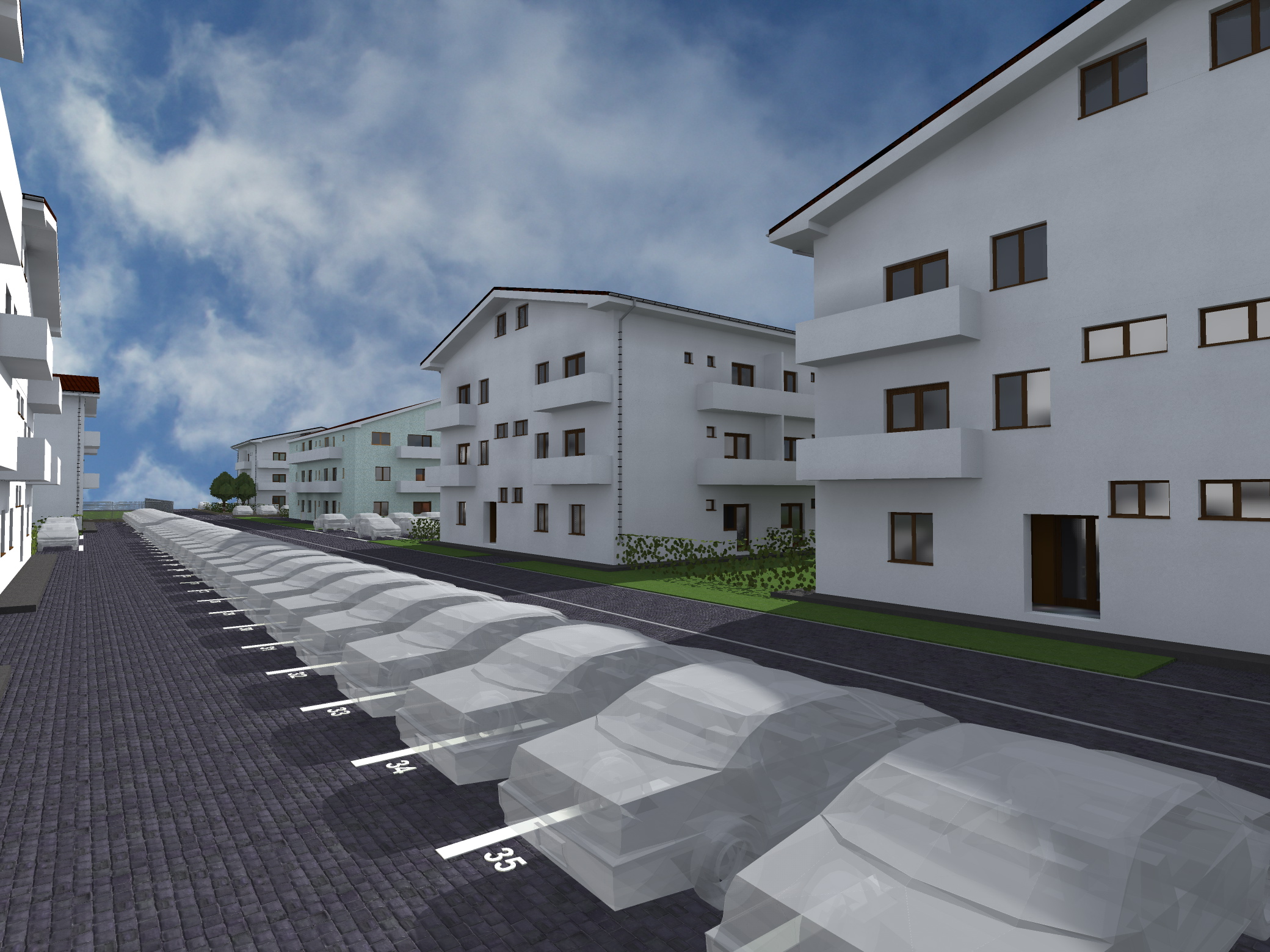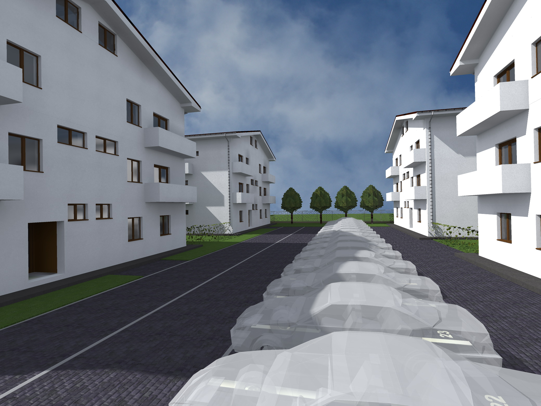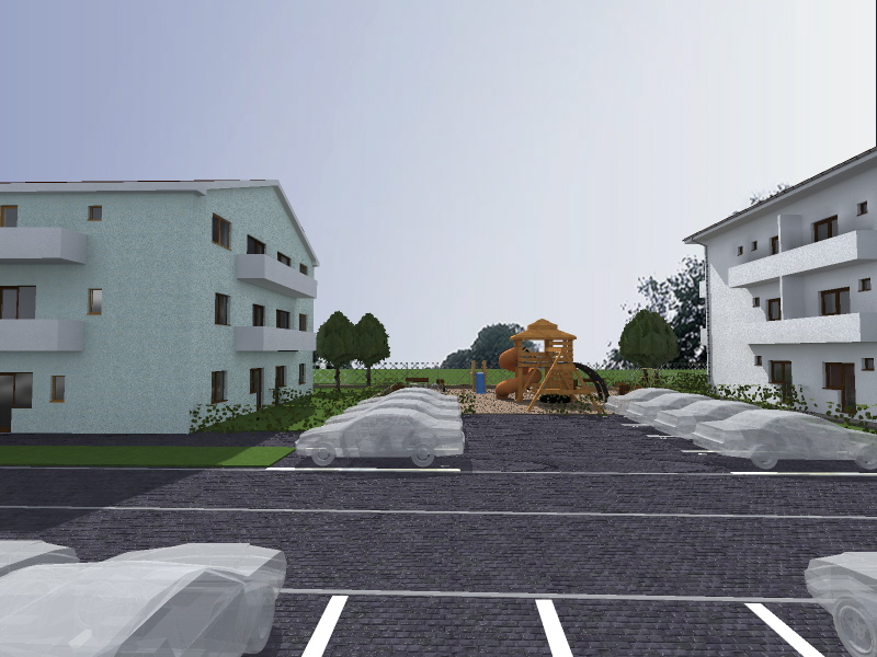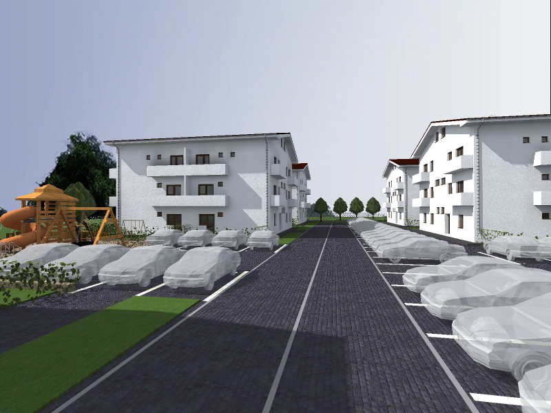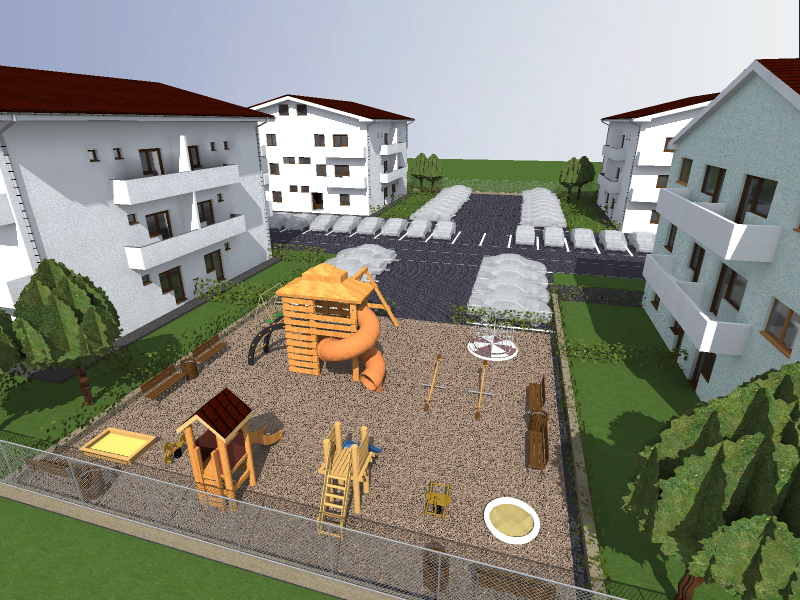 Dupa cum vedeti, in spatele blocului al 2-lea va fi si un loc de joaca pentru copii, si indeajuns de multe locuri de parcare. Zonele verzi nu trebuie sa lipseasca asa ca fiecare bloc va avea parte de ele.